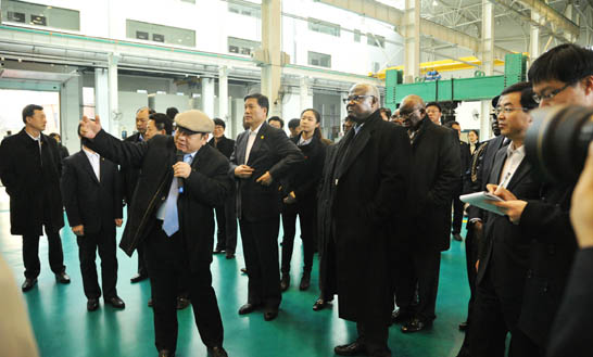 A delegation led by Sierra Leonean President Ernest Bai Koroma who was paying a state visit to China at the invitation of Chinese President Xi Jinping visited SINOTRUK on the afternoon of December 3. Chairman Ma Chunji and Executive Director Liu Wei of SINOTRUK warmly welcomed the visitors, showed them around the Strength Laboratory and Engine Emission Laboratory of the National Heavy Duty Truck Research Center, and accompanied them to visit SINOTRUK's heavy duty trucks, all-wheel-drive heavy duty trucks, protective transporters and other exhibits selling well in the international market.